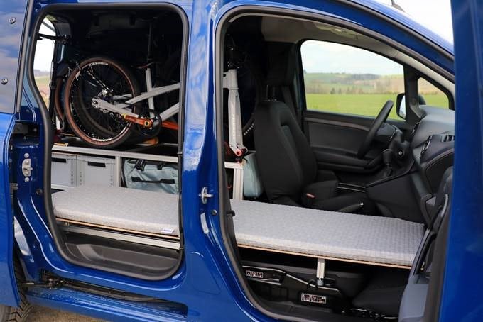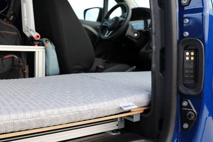 Das fertige Ergebnis für die individuelle Matratze für den Mercedes Citan, den unser Kunde als “Mini Camper” nutzt, kann sich sehen lassen. Unser Kunde hatte den Wunsch nach einer Klappmatratze mit unserem Komfort-Bezug. Durch die Klappnaht kann die Matratze platzsparend im Mini-Camper aufbewahrt werden, somit hat unser Kunde noch viel Platz für Fahrrad, Kisten etc.