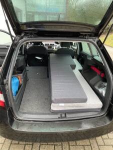 Die Matratze wird dafür einfach in den Kofferraum bzw. auf die umgeklappten Rücksitze gelegt.