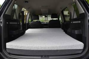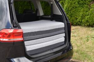 Das fertige Ergebnis für die individuelle Matratze für den VW Touran II, den unsere Kundin unter der Woche als “Familienkutsche” nutzt und am Wochenende gerne als Schlafmöglichkeit bei Festivals oder Kurztrips kann sich mehr als nur sehen lassen. Unsere Kundin hatte den Wunsch nach einer Klappmatratze mit unserem Komfort-Bezug. Durch die Klappnaht kann die Matratze platzsparend im Touran aufbewahrt werden, somit hat unsere Kundin trotzdem noch viel Platz für drei Kinder und Hund.