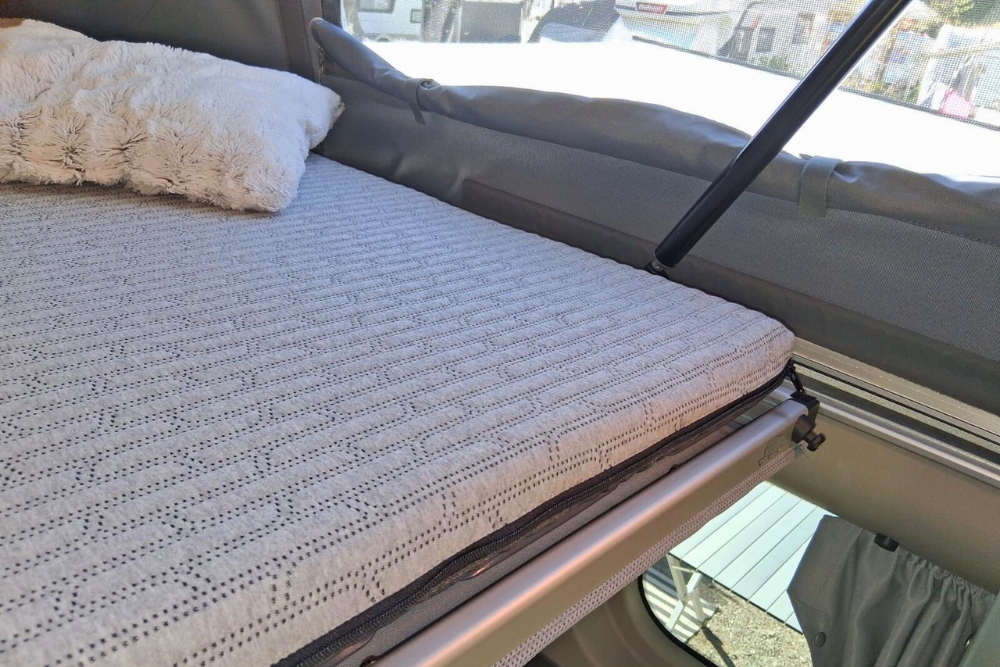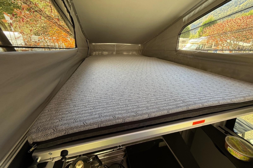 Die Matratze ist speziell auf die Liegefläche des Ford Nugget L1 Aufstelldachs zugeschnitten:
