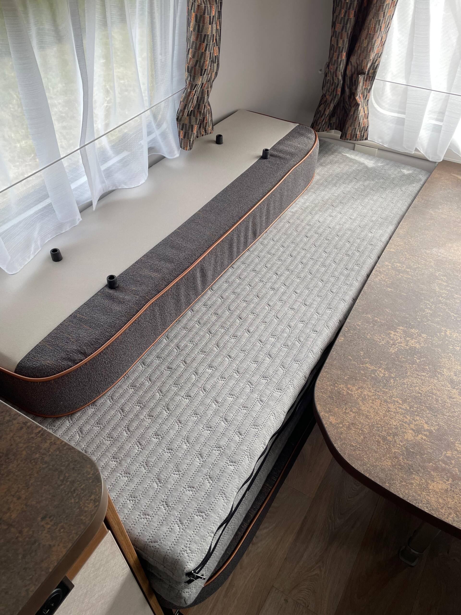 Unser VHRC-Topper (5cm hoch) verwandelt die Umbausitzgruppe in deinem Kult-Wohnwagen zu einem komfortablen Doppelbett mit außergewöhnlich hohem Liegekomfort.