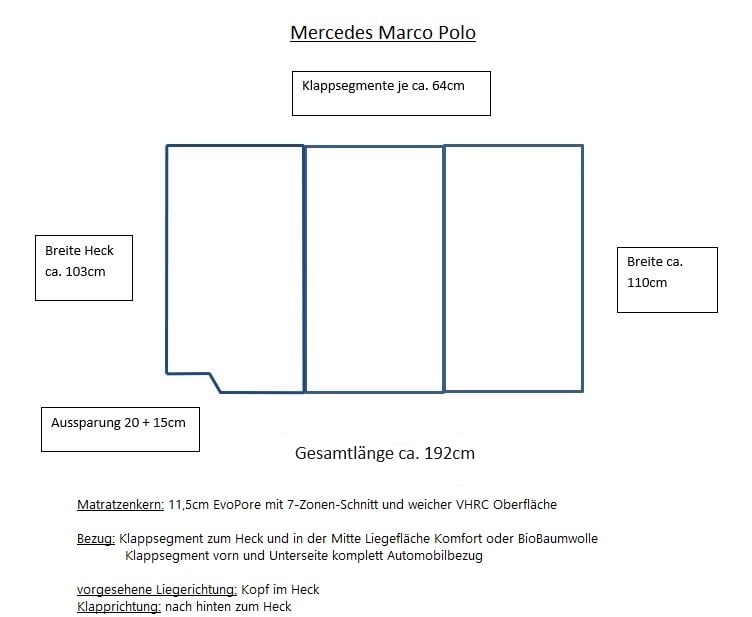 Matratze für den Mercedes Marco Polo (elekt. Heckklappe)