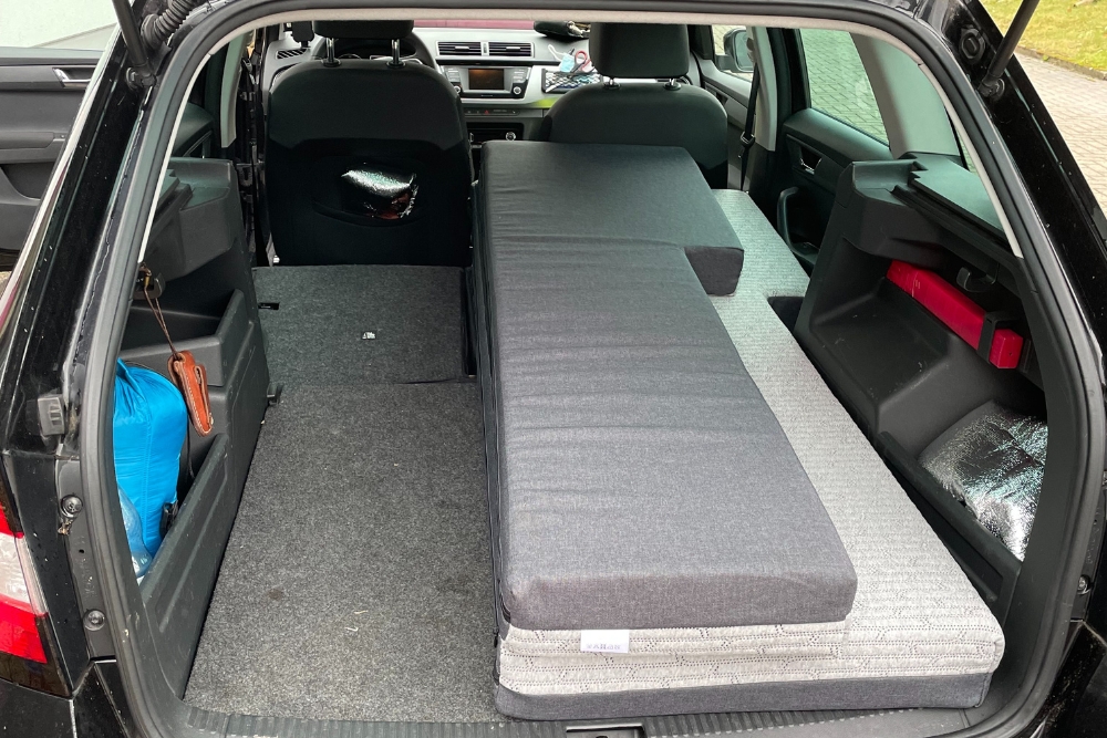Die Matratze wird dafür einfach in den Kofferraum bzw. auf die umgeklappten Rücksitze gelegt.