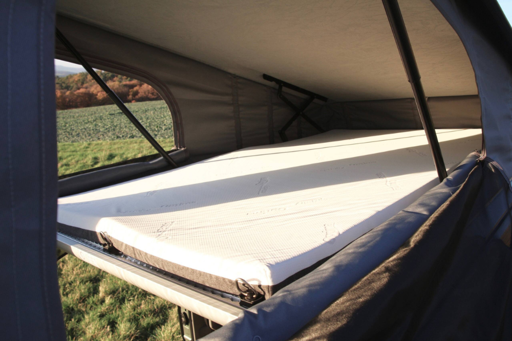 Passende Matratze für das VW T6 Summermobil Aufstelldach mit verstärktem Rahmen (kurzer Radstand). Die Matratze ist dabei ca. 108cm breit und 190cm lang. (im Heck mit passender Kontur)