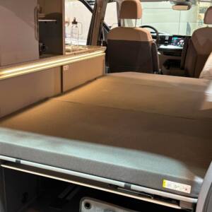 Die Matratze ist exakt auf den Innenraum des VW T7 California Ocean abgestimmt: